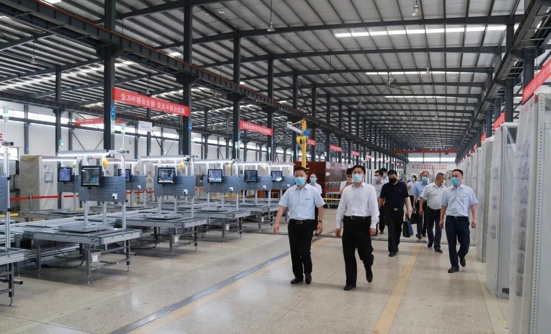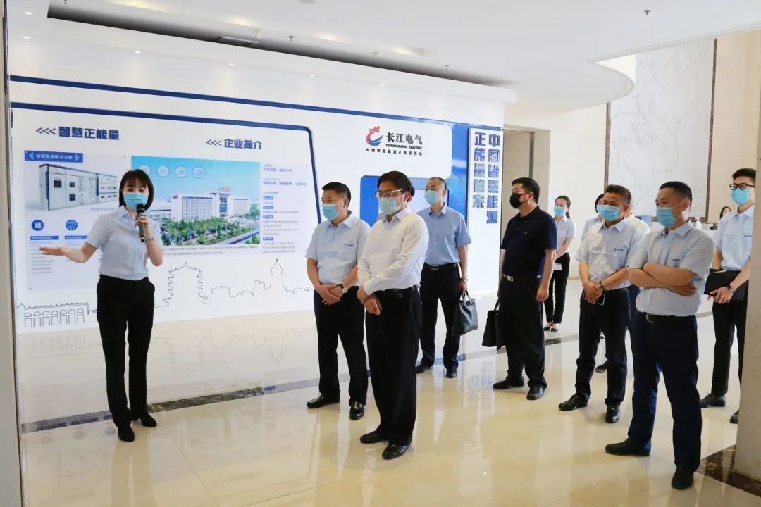 王興於一行先后參觀長江電氣企業展廳,了解企業發展歷程和經營情況;深入長江電氣智能生產車間,參觀企業新一代自主研發的C-smart互聯網智能柜和自動化生產線,關切詢問企業疫情防控、復工復產等情況。