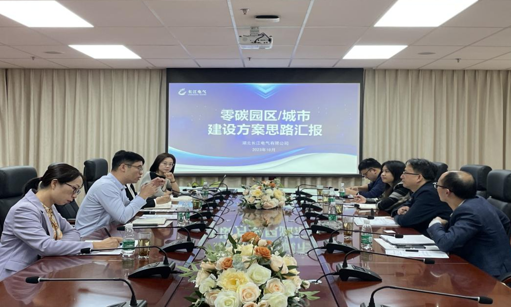 長江電氣黨委副書記章慶、總裁熊婷等對葉圣海一行的到來表示熱烈歡迎,并陪同調研了長江電氣智慧能源建設引領者展廳,介紹了長江電氣企業生產經營、技術研發、智慧能源建設等具體情況,匯報了零碳園區/城市建設方案及實現路徑。