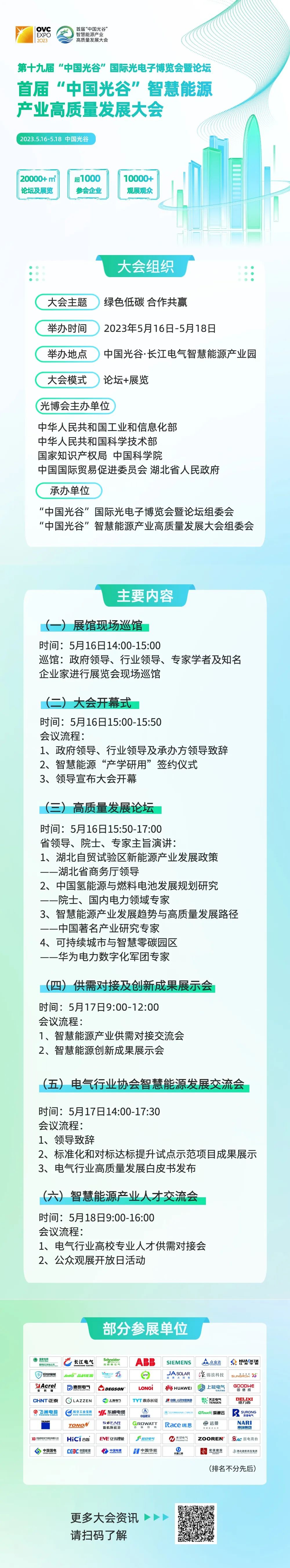 2023年5月16日至18日,首屆“中國光谷”智慧能源產(chǎn)業(yè)高質量發(fā)展大會將在中國光谷舉行。本次大會是第十九屆光博會首次舉辦智慧能源領域分論壇,大會以“綠色低碳,合作共贏”為主題,旨在為政府、科研機構、行業(yè)及用能單位搭建“共建、共享、共治、共贏”發(fā)展平臺,以數(shù)字化勾勒綠色發(fā)展藍圖,共同打造智慧能源產(chǎn)業(yè)生態(tài)圈,匯聚智慧能源產(chǎn)業(yè)發(fā)展磅礴力量。